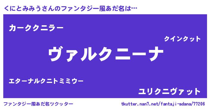 | 女子向けラノベタイトル風あだ名 | 『乙女ゲームの破滅フラグしかない悪役くにとみみうに転生してしまった…』 |