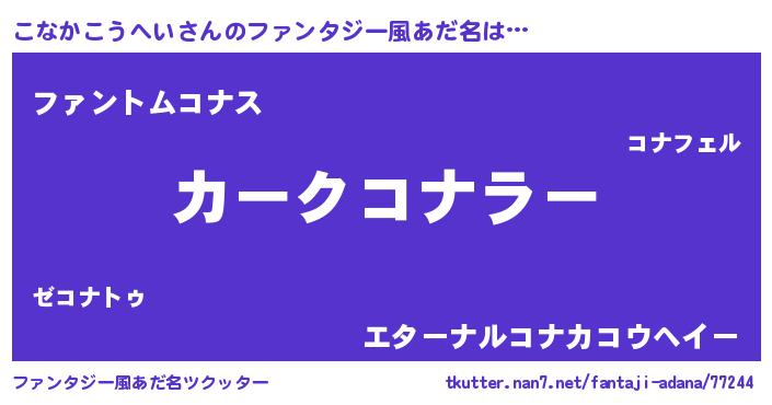 | 胡散臭い通販商品みたいなあだ名 | 『信頼と実績のサプリメント…その名も「こなかこうへい」』 |