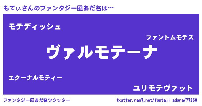 | 男性向けラノベタイトル風あだ名 | 『この素晴らしい世界にもてぃを!』 |