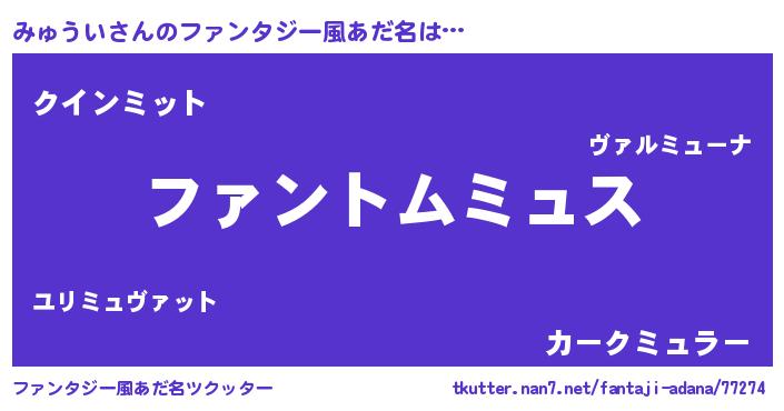 | 男性向けラノベタイトル風あだ名 | 『みゅういに滅ぼされるだけの簡単なお仕事です』 |