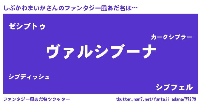 | 男性向けラノベタイトル風あだ名 | 『魔弾の王としぶかわまいか』 |