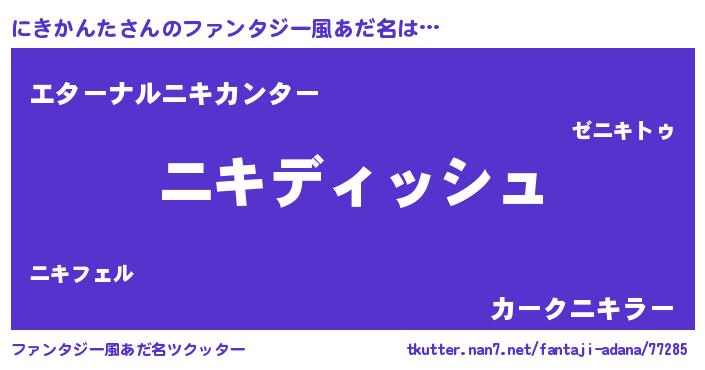 | 男性向けラノベタイトル風あだ名 | 『にきかんたに滅ぼされるだけの簡単なお仕事です』 |