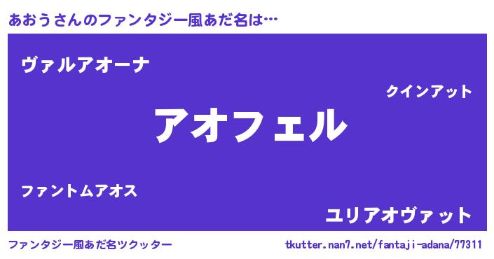 | 男性向けラノベタイトル風あだ名 | 『あおうの憂鬱』『魔弾の王とあおう』 |