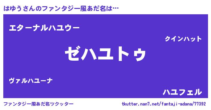 | ポケモン風あだ名 | 『ハユセウス』『ハユゴンZ』 |