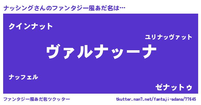 | 男性向けラノベタイトル風あだ名 | 『魔弾の王とナッシング』 |