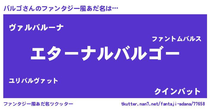 | 意味不明あだ名 | 『バルゴフォーエバー』 |