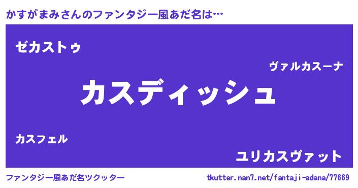 | 胡散臭い通販商品みたいなあだ名 | 『来世でも幸せになれる健康食品…その名も「かすがまみ」』 |