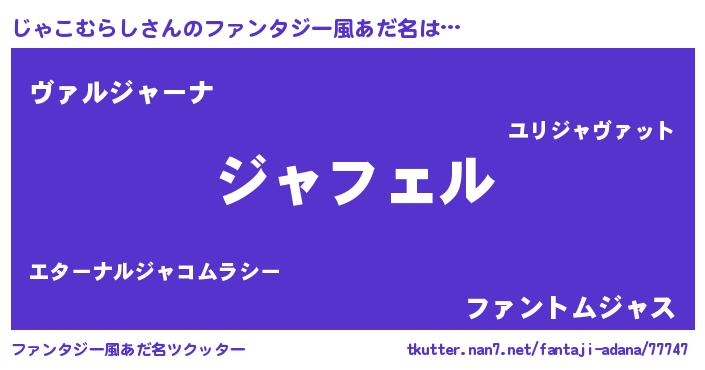 | ヘコむあだ名 | 『じゃっふぃ~』『じゃを』 |