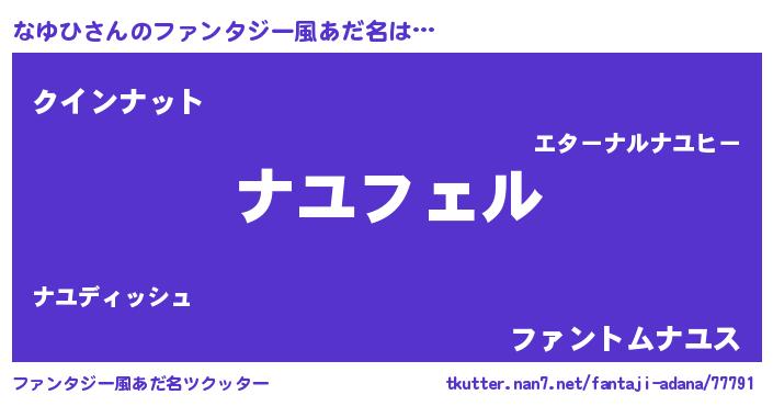 | 男性向けラノベタイトル風あだ名 | 『なゆひの憂鬱』 |