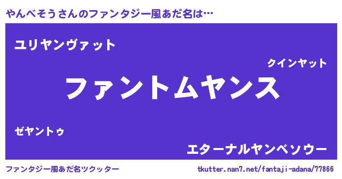 | ヒーロー風カッコイイあだ名 | 『幻影騎士ヤン』『愛の使者やんべそう』 |