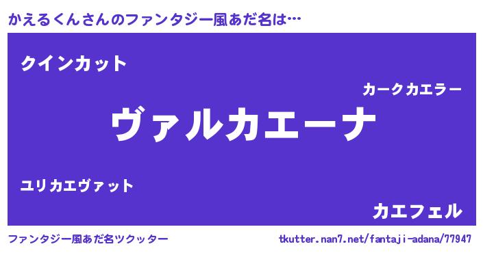| 男性向けラノベタイトル風あだ名 | 『魔弾の王とかえるくん』 |