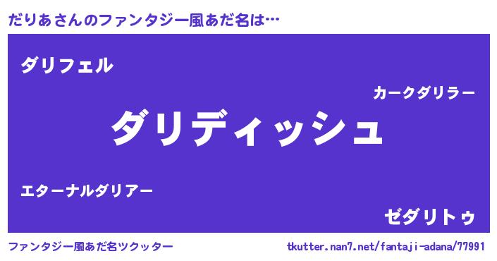 | ヘコむあだ名 | 『だりあ(苦笑)』『だりにー』 |