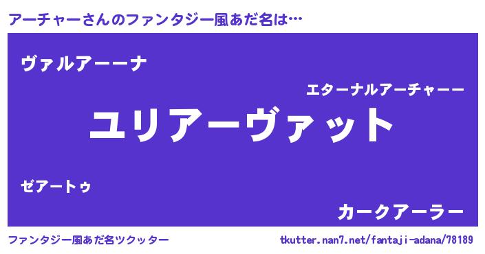 | 男性向けラノベタイトル風あだ名 | 『アーチャー~年齢イコール彼女いない歴の魔法使い~』 |