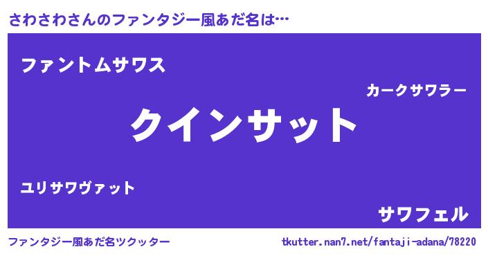 | 自動車の名前っぽいあだ名 | 『サンR』『サルトワパン』『プリサワ』 |