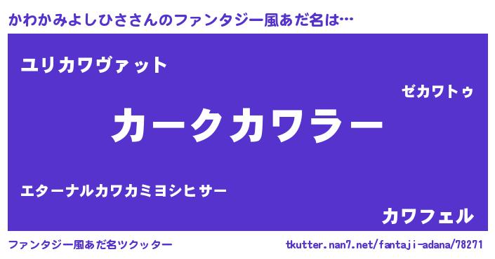 | 胡散臭い通販商品みたいなあだ名 | 『億万長者になれる霊験あらたかなお札…その名も「かわかみよしひさ」』 |