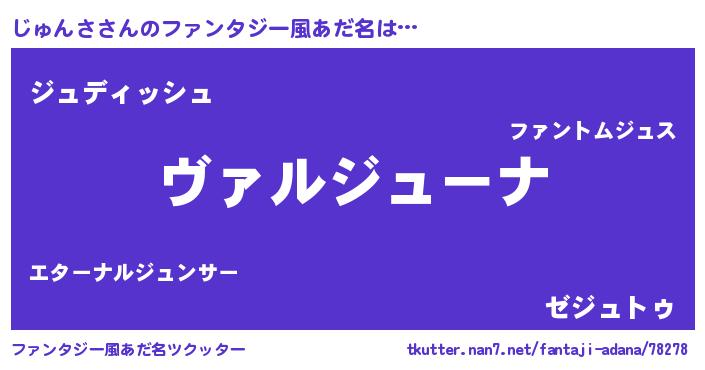 | 男性向けラノベタイトル風あだ名 | 『この素晴らしい世界にじゅんさを!』 |