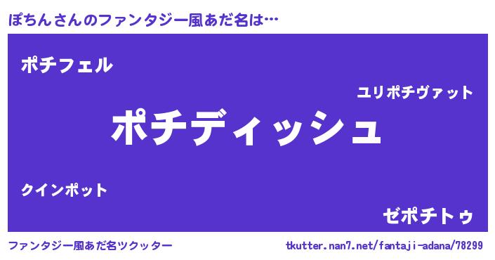 | ポケモン風あだ名 | 『ポチゴンZ』『ゼニポチ』 |