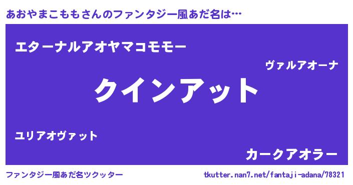 | 女子向けラノベタイトル風あだ名 | 『あおやまこもも恋絵巻』 |