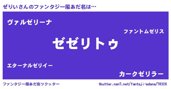 | 男性向けラノベタイトル風あだ名 | 『Re:ぜりいから始める異世界生活』 |