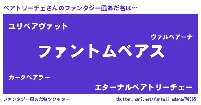 | 男性向けラノベタイトル風あだ名 | 『ベアトリーチェの嫁は女の子じゃないと思った?』 |