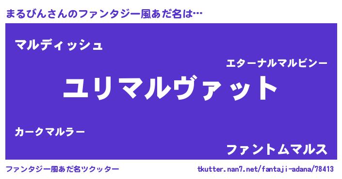 | 男性向けラノベタイトル風あだ名 | 『転生したらまるびんだった件』 |