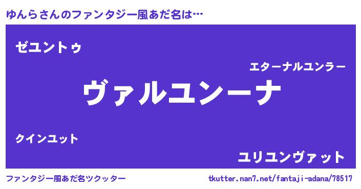 | 女子向けラノベタイトル風あだ名 | 『乙女ゲームの破滅フラグしかない悪役ゆんらに転生してしまった…』 |