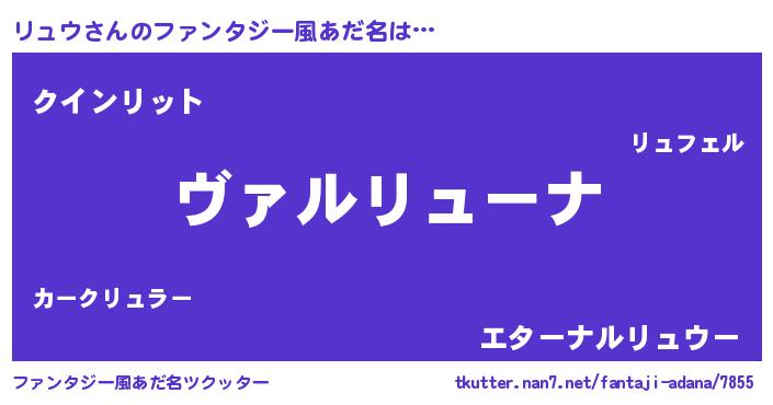 | 男性向けラノベタイトル風あだ名 | 『この素晴らしい世界にリュウを!』 |