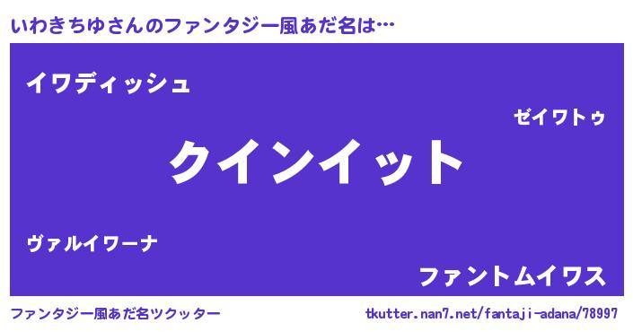| 男性向けラノベタイトル風あだ名 | 『ノーゲーム・ノーイワキチユ』 |