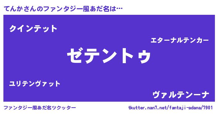 | 男性向けラノベタイトル風あだ名 | 『Re:てんかから始める異世界生活』 |