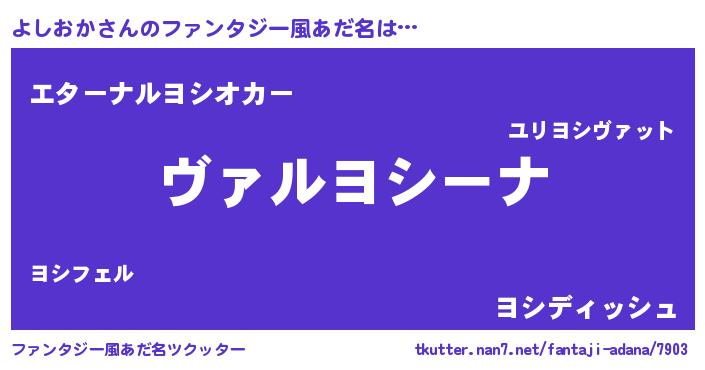 | 男性向けラノベタイトル風あだ名 | 『魔弾の王とよしおか』『よしおかの憂鬱』 |