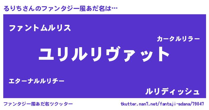 | 男性向けラノベタイトル風あだ名 | 『るりち~年齢イコール彼女いない歴の魔法使い~』 |