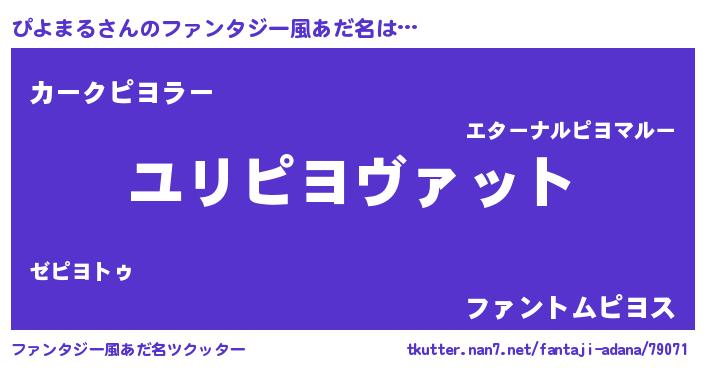 | 意味不明あだ名 | 『たけのこ科ぴよまる属』『自称ぴよまる』 |