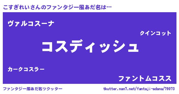 | 胡散臭い通販商品みたいなあだ名 | 『絶対に幸福をもたらす健康食品…その名も「こすぎれい」』 |
