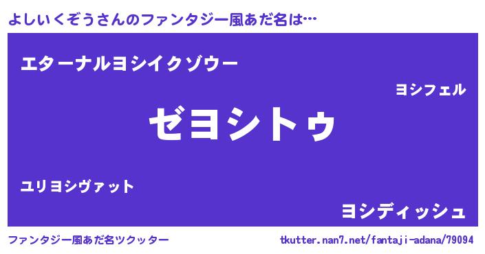 | 女子向けラノベタイトル風あだ名 | 『よしいくぞうなんてお断りですっ。』 |