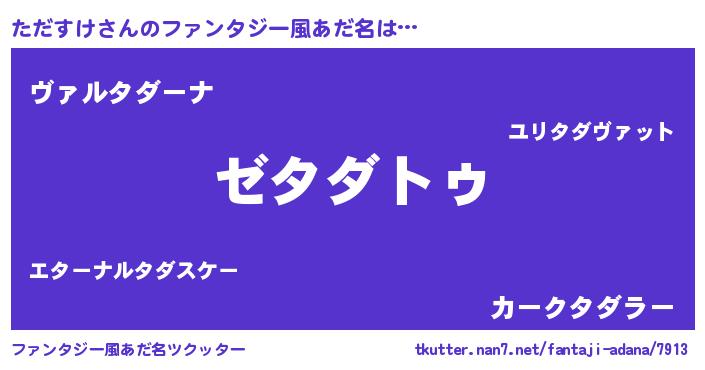 | 意味不明あだ名 | 『自称ただすけ』『エリンギ科ただすけ属』 |