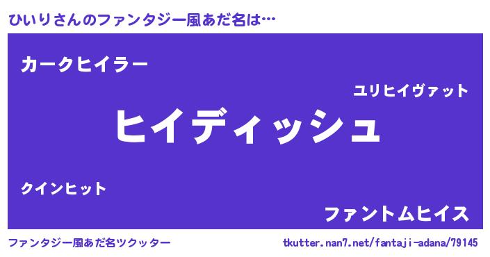 | ヒーロー風カッコイイあだ名 | 『ネオヒイリ』『黄金騎士ヒイ』 |