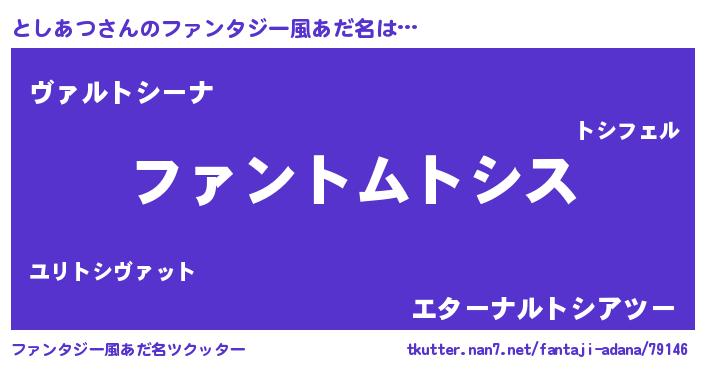 | 男性向けラノベタイトル風あだ名 | 『としあつの嫁は女の子じゃないと思った?』 |