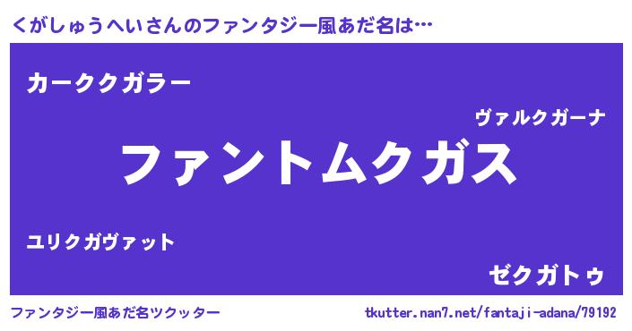 | 男性向けラノベタイトル風あだ名 | 『くがしゅうへいの嫁は女の子じゃないと思った?』 |
