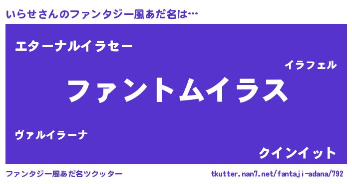 | ヒーロー風カッコイイあだ名 | 『炎刃騎士イラ』『ウルトラいらせマン』 |