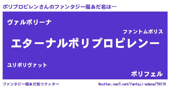| 男性向けラノベタイトル風あだ名 | 『ポリプロピレンに滅ぼされるだけの簡単なお仕事です』 |