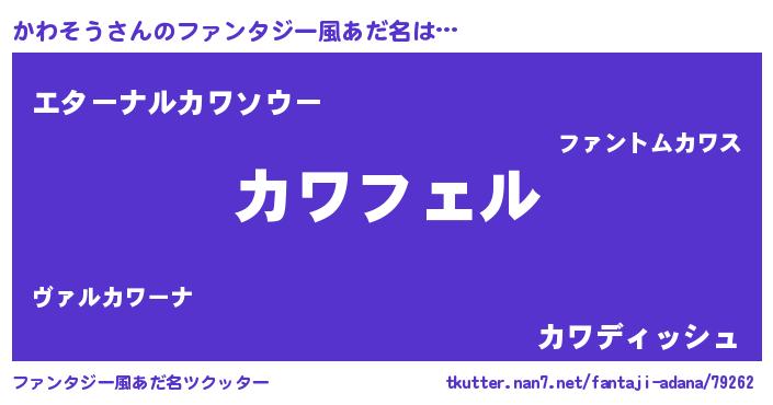 | 男性向けラノベタイトル風あだ名 | 『かわそうの憂鬱』 |