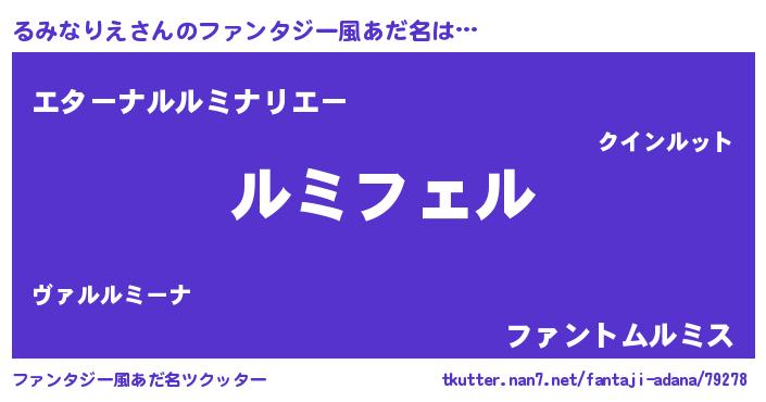 | 女子向けラノベタイトル風あだ名 | 『るみなりえ姫と円卓の騎士』 |