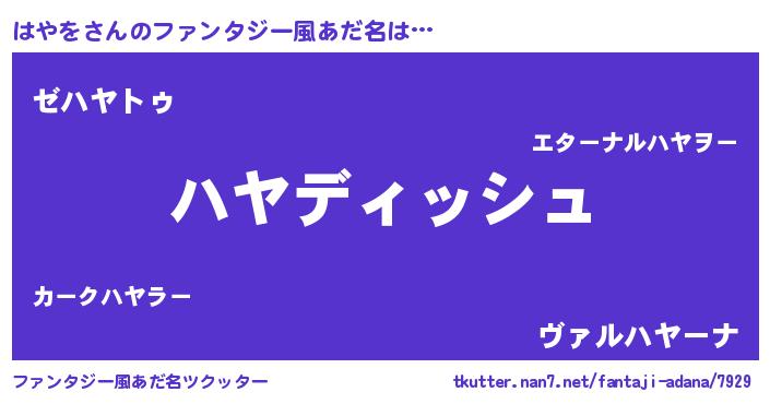 | 意味不明あだ名 | 『永久保存はやを』『自称はやを』 |