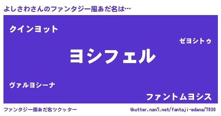 | 男性向けラノベタイトル風あだ名 | 『ヨシサワアートオンライン』 |