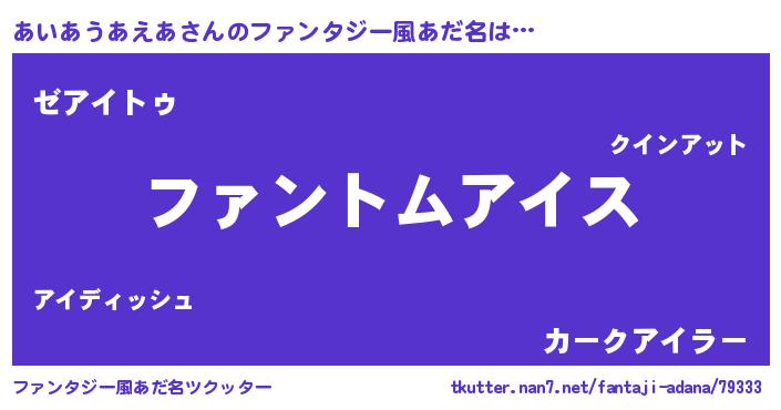 | 男性向けラノベタイトル風あだ名 | 『あいあうあえあの嫁は女の子じゃないと思った?』 |