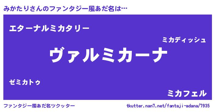| ヒーロー風カッコイイあだ名 | 『仮面ミカダー』『ウルトラみかたりマン』 |