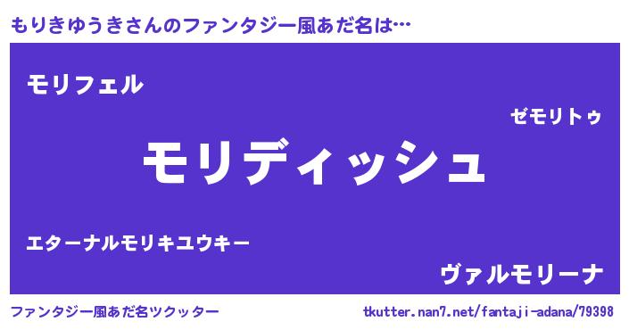 | 男性向けラノベタイトル風あだ名 | 『もりきゆうきに滅ぼされるだけの簡単なお仕事です』 |