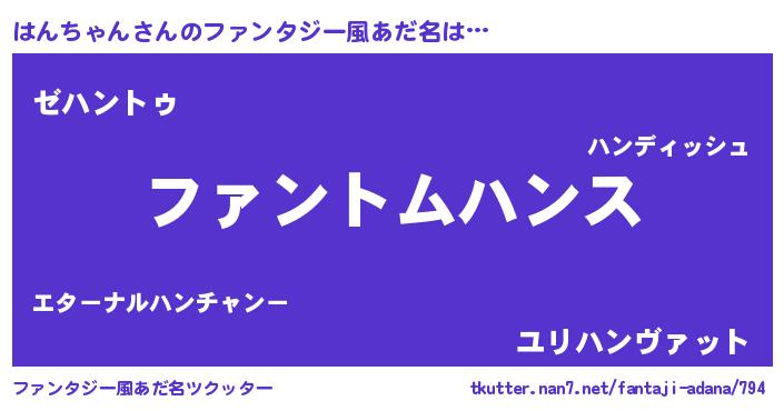| 女子向けラノベタイトル風あだ名 | 『はんちゃんは平凡を望む』 |
