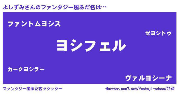 | 男性向けラノベタイトル風あだ名 | 『よしずみの憂鬱』『魔弾の王とよしずみ』 |