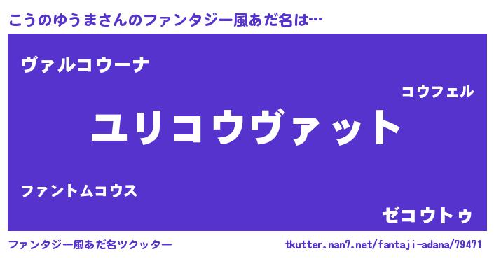 | 男性向けラノベタイトル風あだ名 | 『コウノユウマスレイヤー』 |